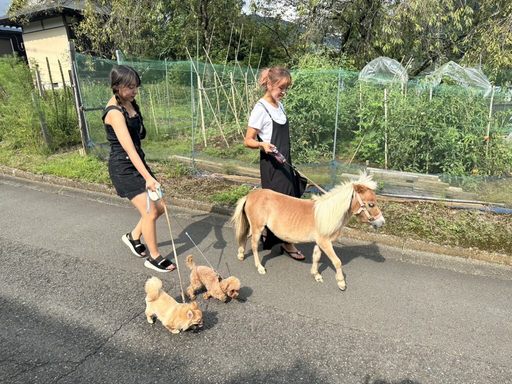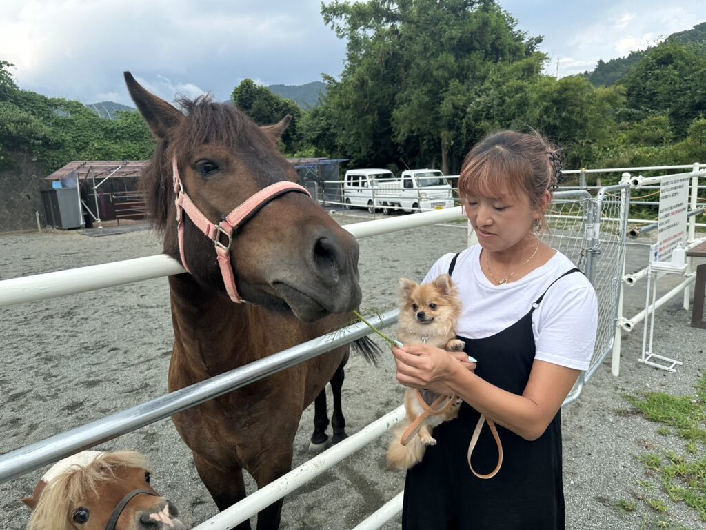 出来ます。ワンちゃんと馬と一緒にお散歩は如何ですか?
